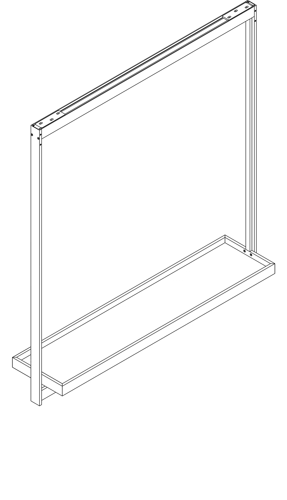 Ihre Tiefe von 230 mm und 15 kg-Traglast machen sie zur praktische Ablagefläche für Kochgeschirr oder dekorative Gegenstände. Eine Reling unterhalb des satinierten Glasbodens kann zum griffbereiten Einhängen von Küchenhelfern genutzt werden.