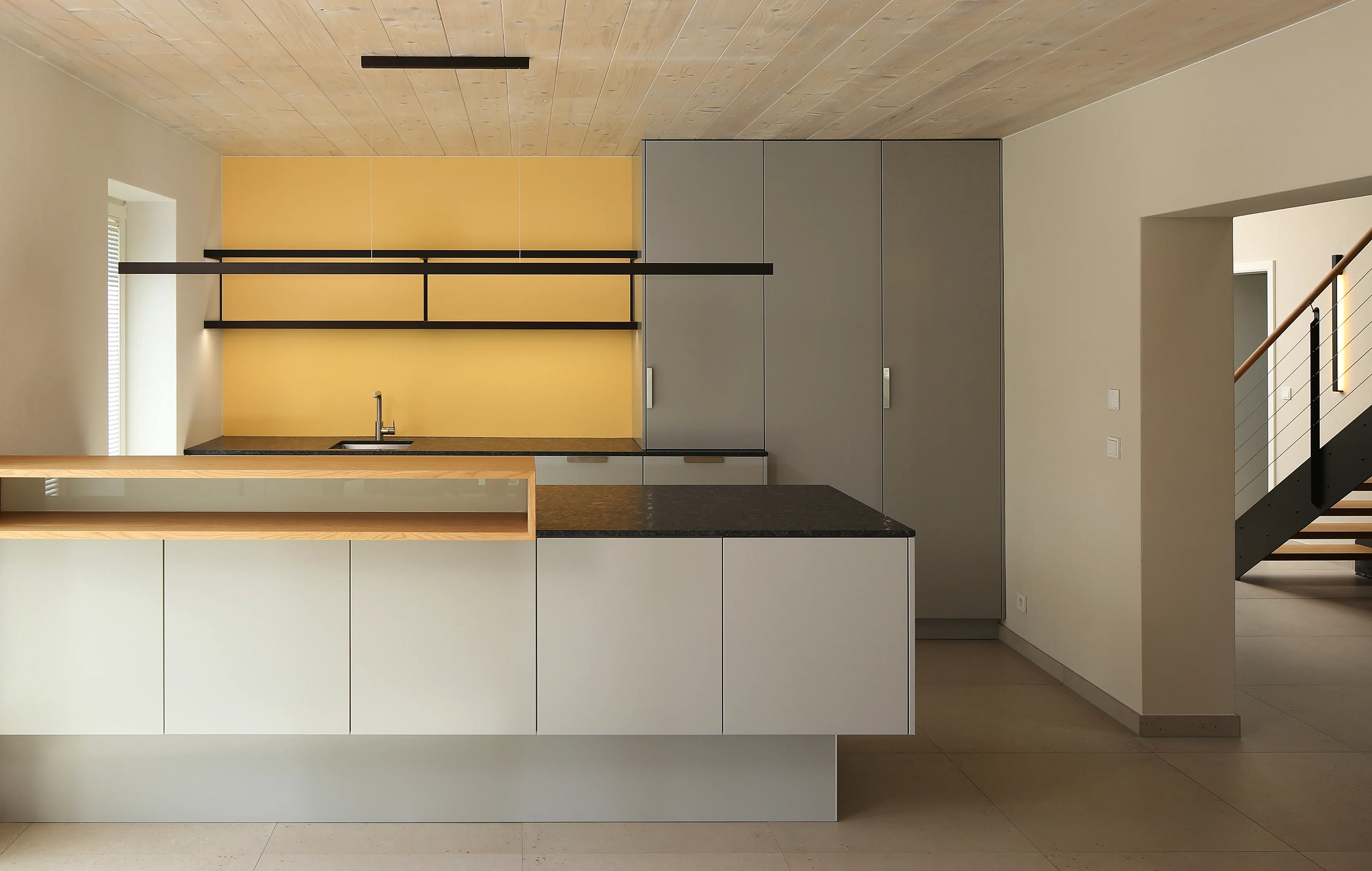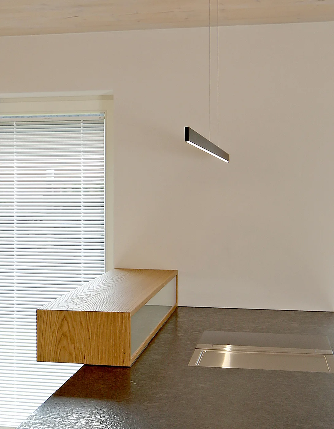 Beleuchtungskonzept für ein privates Wohnhaus (ca. 260 qm) mit durchgängiger Planung und Umsetzung. Zum Einsatz kamen verschiedene Systeme von GERA Leuchten, darunter Solid, Quadra und Quadra Wall, Slant und Scoop sowie Einbauleuchte flach und Auszugsbeleuchtung.